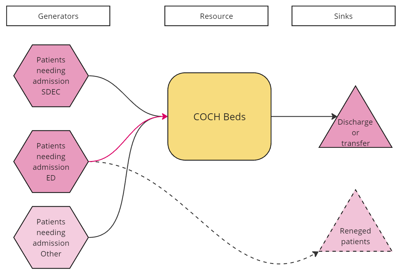 - What is the optimum number of people to stream from ED to SDEC to minimise ED waits? (Evidence for a particular management strategy)